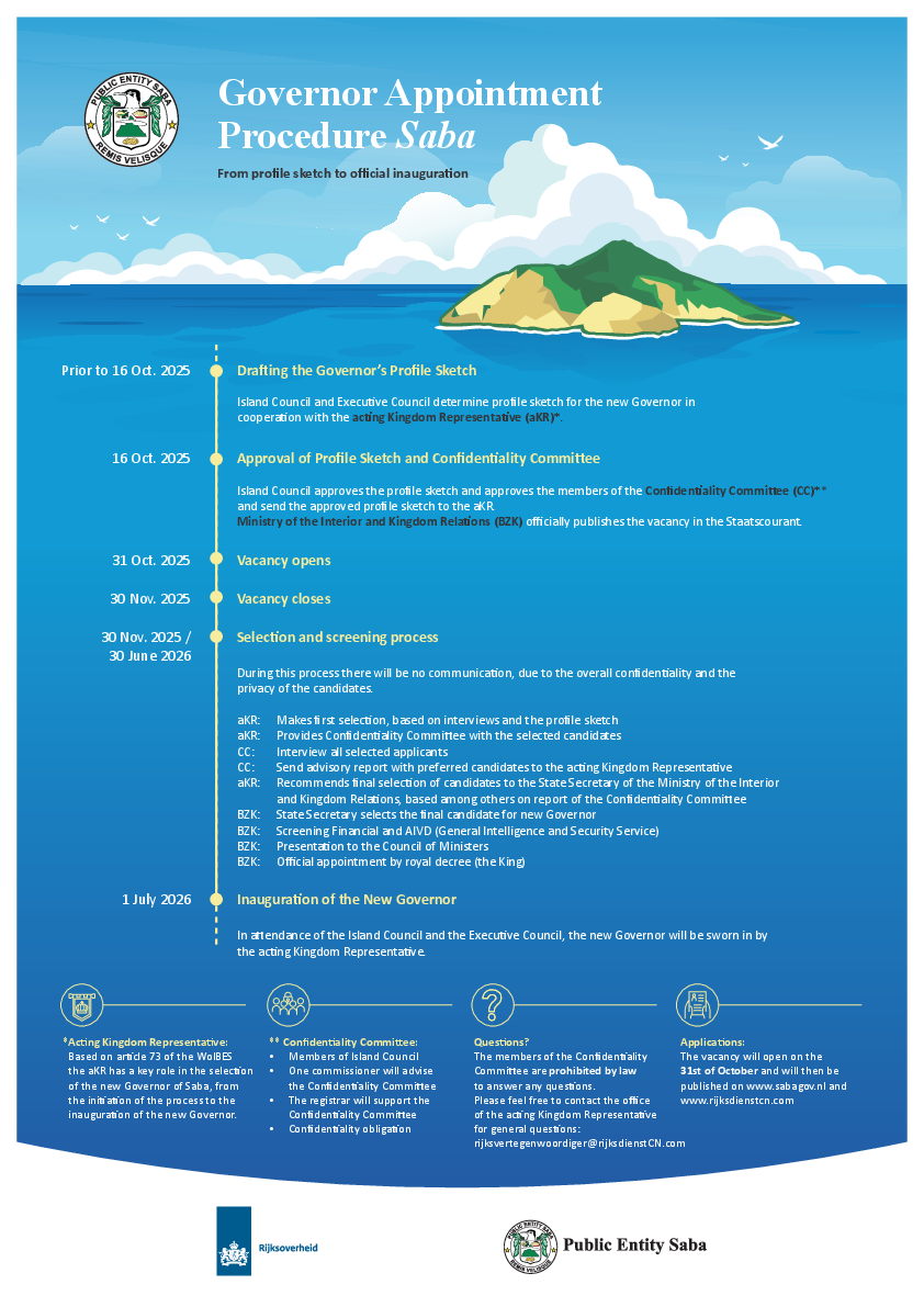 The prerequisites for the position will be publicly available through the profile sketch, which is part of the vacancy that will be posted on www.sabagov.nl and https://english.rijksdienstcn.com/working-at-the-rijksdienst-caribisch-nederland/vacancies.