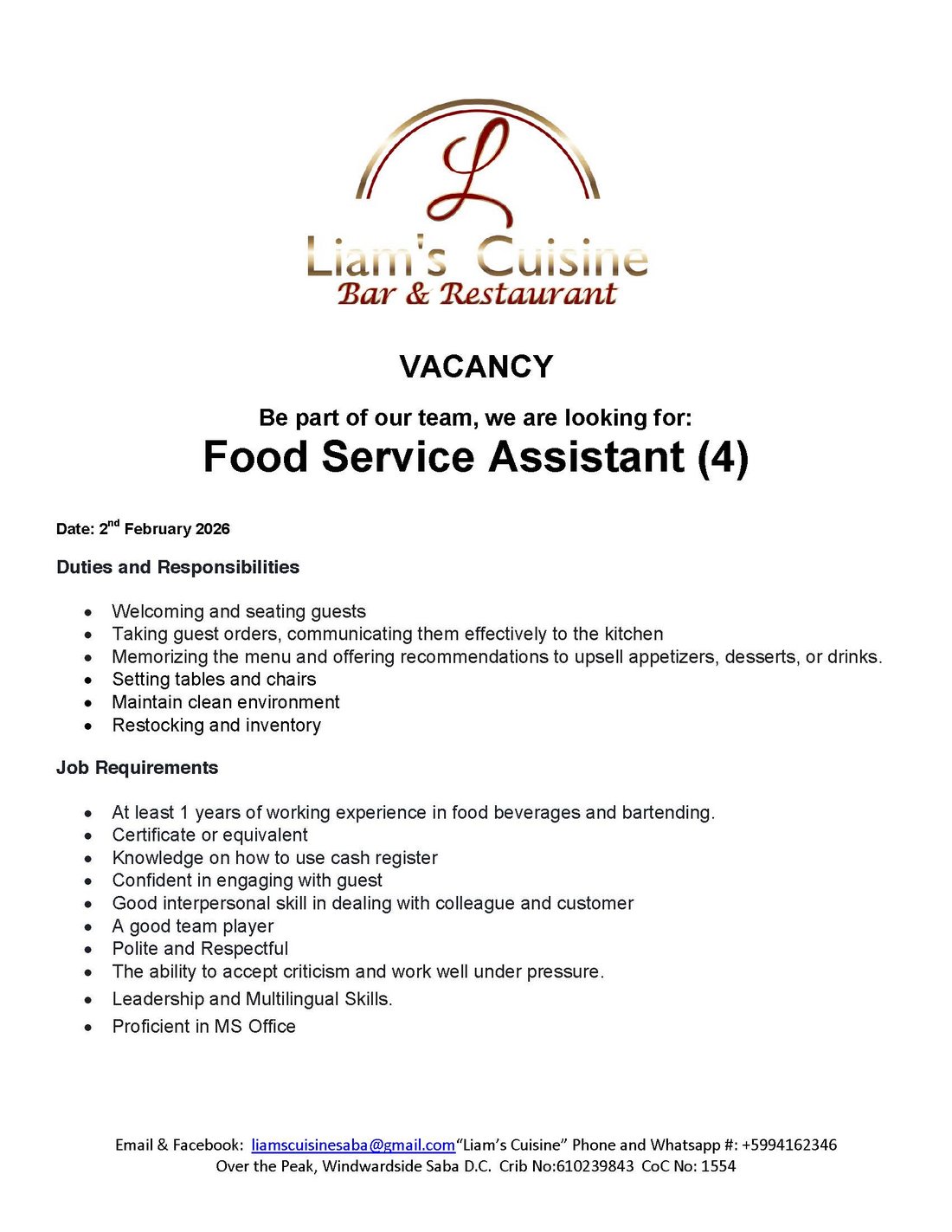 Liam's Cuisine Bar & Restaurant - Food Service Assistant (4)