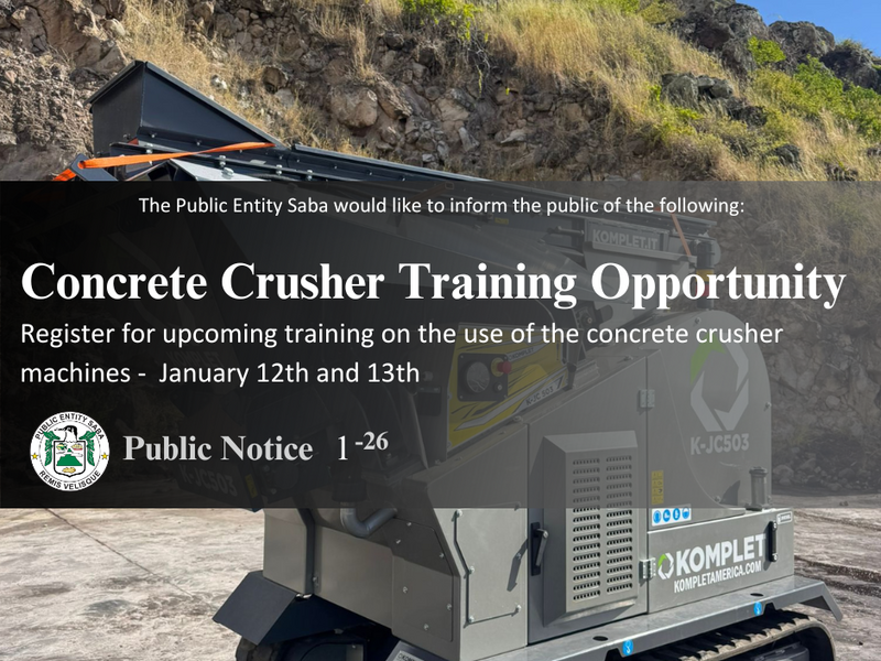 The Public Entity is reminding contractors and interested individuals of the upcoming training on the use of the concrete crusher machines, scheduled for January 12th and 13th.