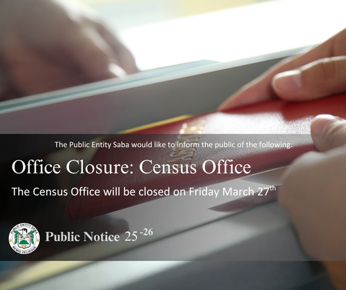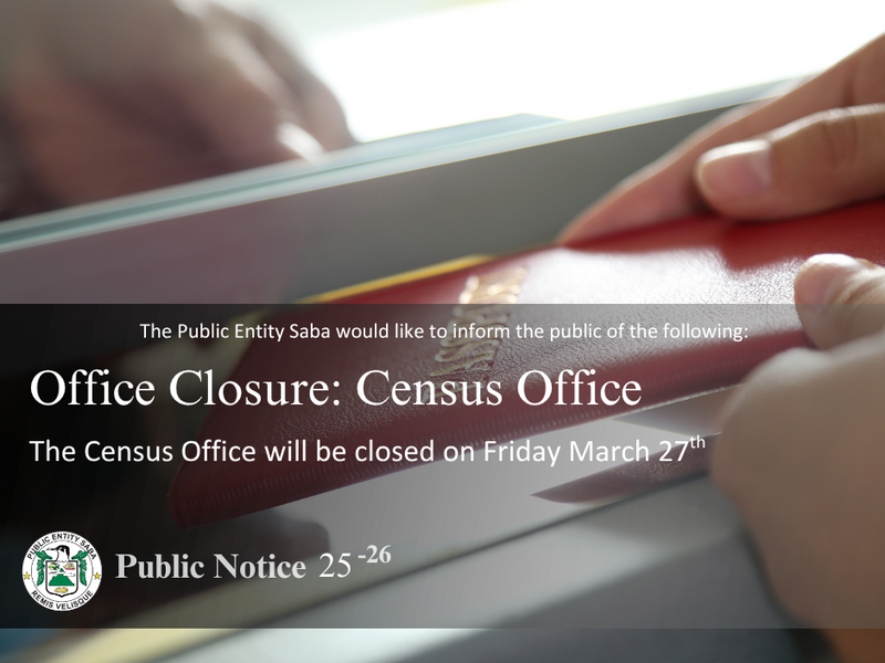 We wish to inform the public that on Friday March 27th, the Census Office will be closed.