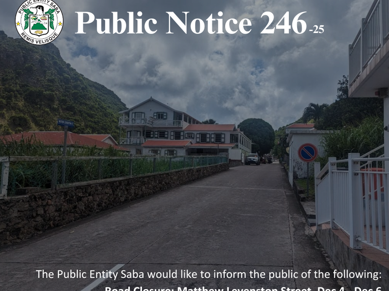 This closure is necessary to facilitate the Saba Day Street Fair, which will take place on Friday December 5th.