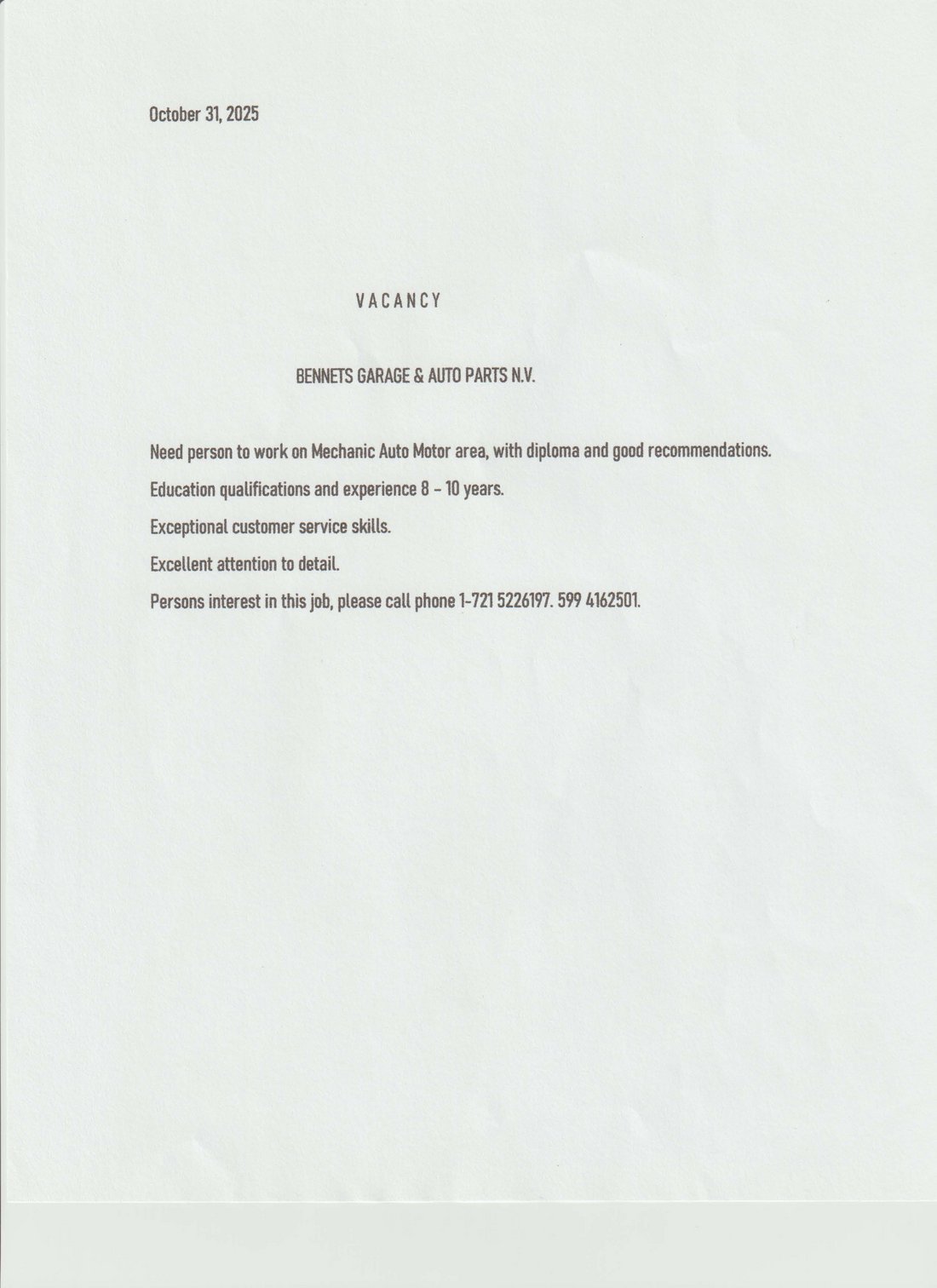 Bennets Garage & Auto Parts N.V. - Mechanic
