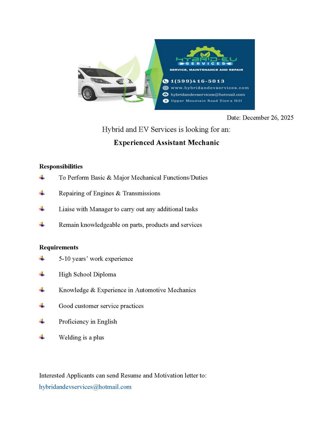 Hybrid and EV Services - Experienced Assistant Mechanic