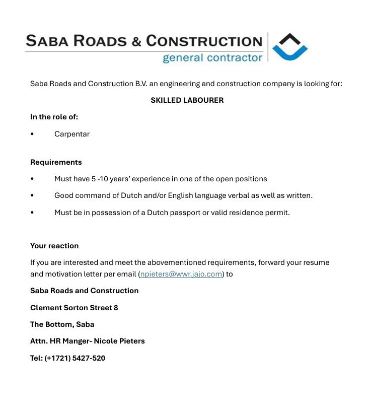 Saba Roads - Skilled Laborer