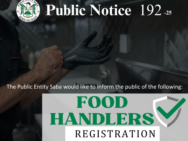 If you have any questions regarding this fee or the Food Handers class, please contact Randall Johnson at randall.johnson@sabagov.nl.