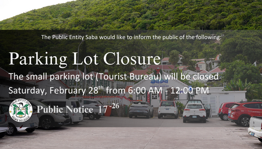 The small parking lot (Tourist Bureau) will be closed Saturday, February 28th from 6:00 AM - 12:00 PM