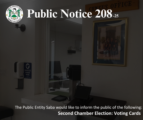We wish to remind the public that if you have not yet received your voting card for the Second Chamber Election by October 15th in person or through your mailbox, please collect it at the Census Office.