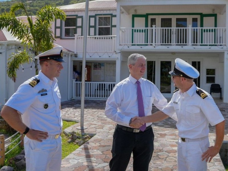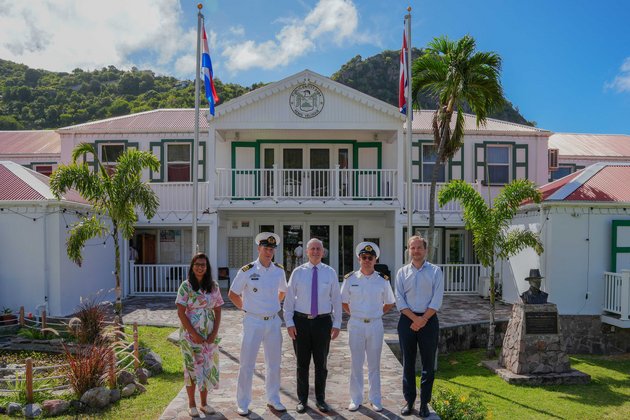 The delegation, consisting of the Detachment Commander of Sint Maarten, Majoor der Mariniers (Niels) Houtenbos and Liaison Officer Civil-Military Cooperation, Luitenant Lodewijk Portielje, was introduced to the island. Central in the conversations was the collaboration between MARNSDET SXM and Saba.