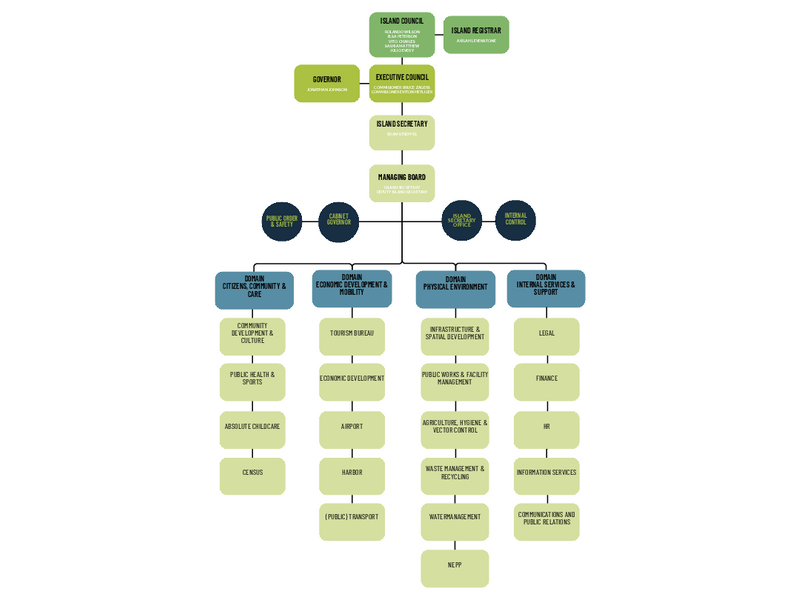 Over the past years, the responsibilities and ambitions of the Public Entity have grown significantly. With that growth, the work of government has also become more complex. Until now, many departments reported directly to the Island Secretary. While this “flat” structure has worked well for a very long time, it also made it difficult to give enough time and attention to leadership, teamwork, and long-term development and impact of short-term decisions.