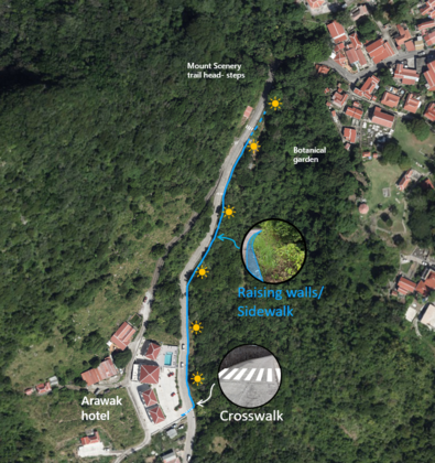 The safety wall near the Saba Splash pump house will be heightened along a stretch of approximately 250 meters towards Windwardside to further improve road safety.